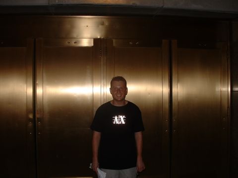 After auditioning in the NBC Building for the part of Kramer, and Kramer does horribly b/c he's trying to act, when he is the one who originally said the line about seeing Joe Dimaggio in Dinky Donuts, he has to hit the can, so he ran across the street to ask to use the toilet and LD told him that it was "for customers only". However, across the street are the exit doors to Radio City Music Hall, but we took a pic of it anyway. Check 4:23 The Pilot Part 1 if you're lost.