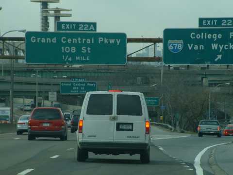 Right next to the sign for the Van Wyck Expressway on the Long Island Expressway is the sign for the Grand Central Parkway, which is where we were going in order to continue the tour. The GCP is also mentioned in a few episodes and is presumably used in many others.
