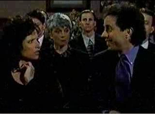 She is a big time germaphobe and while it looks bleak for her at first, and she takes off a day of work due to intense malaise, when in fact, all Elaine did was cough on her doorknob, put her stapler in her armpit, and rub her keyboard on her butt, she ends up overcoming it, only to celebrate with a salad that Kramer prepared while bathing. She has a problem with that dolt Elaine and with Susie, whom she never met. She's mightily impressed with men who murder, assault, and carry on sexual intercourse with multiple partners.