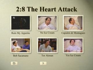 SUMMARY George thinks he's had a heart attack; in fact, he needs to have his tonsils taken out. Elaine begins dating the doctor, who is interested in her tongue. Kramer takes George to a holistic healer, but the treatment turns George purple.