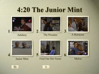 An excellent OCB opens up this second pseudo-Season 6 episode. This is just a beautiful episode. Perfect Jerry when he's pseudo-sticking it to Elaine about going to the Poconos and being boyfriend/girlfriend, just to screw her over. Beautiful link with Prognosis Negative. Dr. Siegel and Mulva both show their faces for the first time, with Dr. Siegel having the utmost importance for future eps, while Mulva, not so much. Great subplot of Mulva throughout the ep, and a brilliant finale Mulva, Gipple, and Loliola, and then Jerry screaming out the window Dolores. The entire episode showcases Kramer's genious at comedy with his fighting against Jerry, facial movements, and strange noises that come from him during the Junior Mint falling as well as throughout the ep. Finally, George is great with his triangles shtick, an appearance of Uncle Avi, Georgie crying during Home Alone b/c of the old man, no pun intended, and that he hated the 2nd one b/c he was lost, and that the music during Home Alone was totally not from that movie, and George getting kissed by Roy while Jerry says "that's nice". Was that a run on sentence or what? Overall, an excellent episode, well deserved to be in the Top 50. Actually, I just checked, and it wasn't on the Top 50, so it's now a 3rd Siyum addition. Well done 4:20 The Junior Mint, well done indeed. Adam - Hilarious episode. From The Junior Mint to the fat starving artist. All is well with Seinfeld.