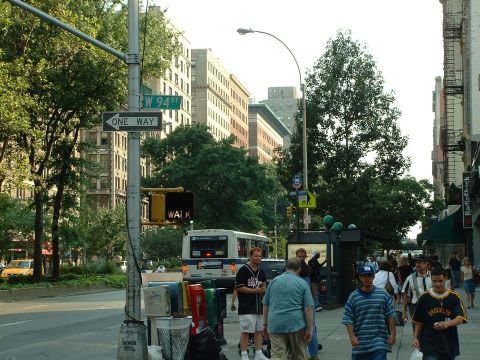 2 blocks south of our last stop and we arrived at our next one. Not so bad so far. So what happened on 94th Street? We go back to 8:4 The Little Kicks, where Jerry asks Kramer where he met Brody, the bootlegger. So Kramer tells him and thereby, tells us, that one day he was up on 94th Street playing Pichinko with Corky Ramirez. And so, that is what I am attempting to do in this pic, play Pichinko, a card game, with Corky Ramirez. In fact, I didn't bring cards along with me, so I just took out all of my credit cards, library cards, etc. and fanned them out like I was playing with a deck of cards, and I also didn't have a friend named Corky Ramirez with me, so I then told Adam to wait until a Hispanic guy walked by me and then take the pic, and there you go.