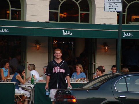 We continued down 77th Street to Columbus Avenue, where we hit Isabella's, the trendy restaurant with excellent wine, at least according to George, who doesn't know what he's talking about. Yes, this is the restaurant where Jerry initially refused to go with Elaine, so George picked this restaurant to go to with Cheryl Fong, so they won't possibly see Jerry, and George can be the funny guy. If you still have no idea what I'm talking about, check out 4:15 The Visa, it might help.