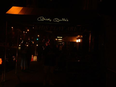 Near the center of Manhattan was Mickey Mantle's, where Kramer tried to beg for Mickey's forgiveness for punching him down in Florida in a fantasy baseball camp, but was then thrown into a