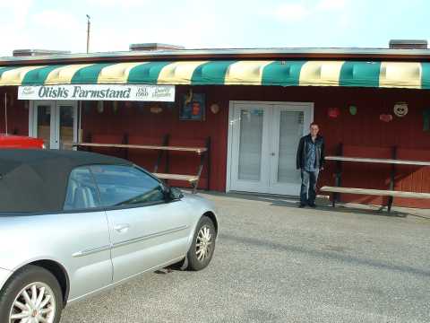 We start off our tour by travelling all the way out to eastern Long Island, deep into Suffolk County, until we hit the Hamptons, Westhampton, Southhampton, and Easthampton. While driving toward our next stop, we spotted this store selling Hampton Tomatoes, and so, we assume, this is where George went to buy his mother Hampton Tomatoes. Obviously this is from 5:21 The Hamptons.